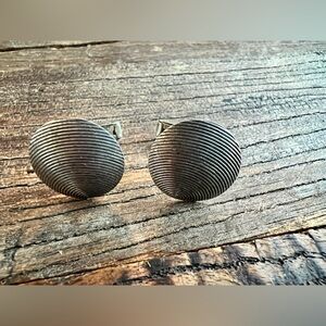 Elegant silver shell cufflinks with a textured design. Perfect for formal occasions.