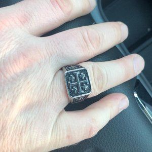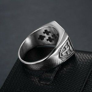 Elevate your style with this striking silver shield ring. Perfect for adding a bold touch to any outfit.
