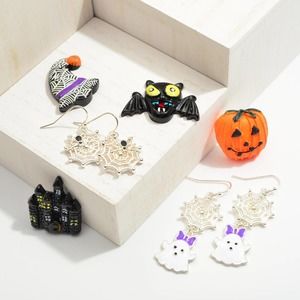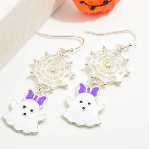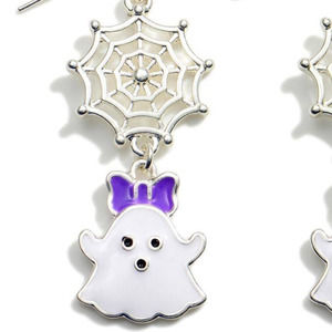 Silver Siderweb Girl Ghost Enamel Dangle Drop Earrings