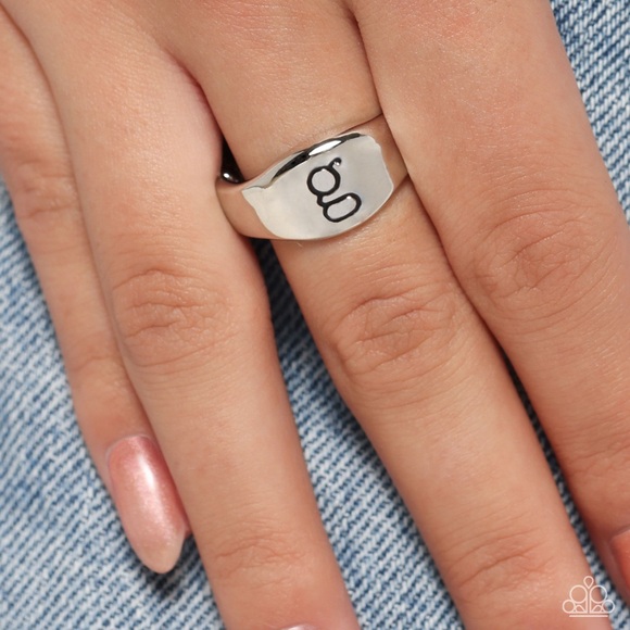 Elegant silver signet ring with a sleek design. Perfect for adding a touch of sophistication to any outfit. Stretch band