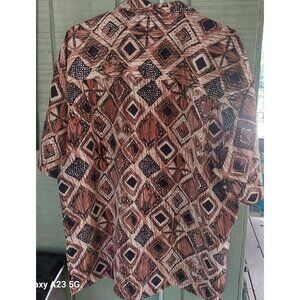 The Silver Silk Men's Button-Up Shirt in 4X offers a relaxed fit with its eye-catching geometric pattern. Its professional appearance makes it suitable for smart-casual settings, enhancing any wardrobe with its unique design.