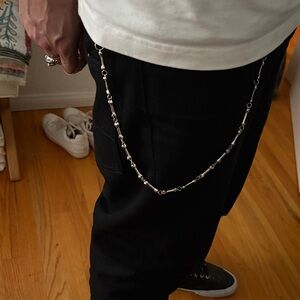 Elevate your style with this unique silver skeleton chain accessory. Perfect for adding an edgy touch to any outfit.