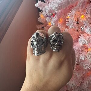 Bold silver skull rings with intricate details. Perfect for adding an edgy touch to any outfit. Estimated size 9.
