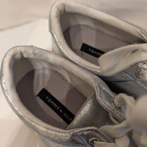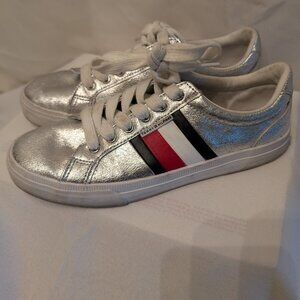 Stylish silver sneakers with a bold striped detail. Perfect for casual wear. 6248