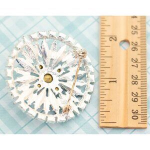 Silver Snowflake Rhinestone Brooch. A silver tone brooch that might resemble a snowflake with a ring filled with rhinestones.
