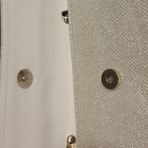 This elegant silver clutch bag is perfect for any occasion. Its sleek design and shimmering finish add a touch of sophistication to your outfit.