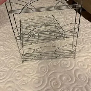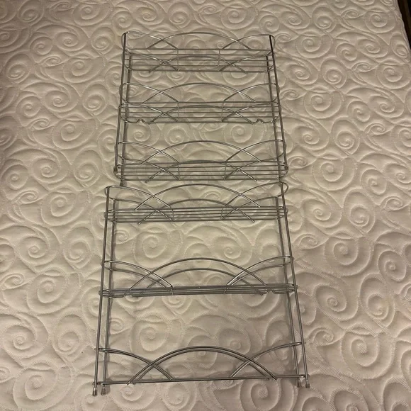 Enhance your home decor with this sleek silver wall-mounted rack. Perfect for organizing and displaying items in style.