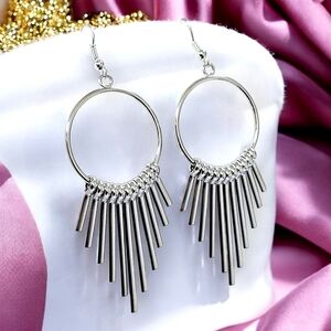 Turn heads with these stunning silver plated alloy earrings featuring a bold hoop design with cascading metallic spikes. Lightweight and stylish, these earrings bring effortless edge and modern boho vibes to any look. Perfect for parties, special occasions, or elevating your everyday outfits. ๐Ÿ“Measurements: 3"L x 1.15"W ๐ŸŽ Includes gift jewelry box or jewelry storage pouch plus premium packaging โœจ Comfortable and easy to wear ๐ŸŒฟ Trendy boho chic style with a modern twist ๐ŸŽ€ Makes a beautiful gift or a treat for yourself Carefully packaged and shipped with love ๐Ÿ’– Let your style shine with this unique pair โœจ ๐Ÿฆ‹ Super Fast Shipping ๐Ÿ“ฆ๐Ÿƒ๐Ÿปโ€โ™€๏ธ | 5 โญ๏ธ Trusted Seller ๐Ÿ’– Explore my boutique for more boho chic jewelry! ๐Ÿ“ฟ๐Ÿ’Ž โœจ Bundle & Save! โค๏ธโฌ‡๏ธ๐Ÿ’ฐ silver dangle earrings, boho chic earrings, statement earrings, festival earrings, silver hoop earrings, fringe earrings, long dangle earrings, edgy earrings, modern boho jewelry, trending earrings 2025, silver fashion earrings, lightweight earrings, bold earrings for women, spring jewelry trends, summer accessories, music festival style, gift for her, silver plated earrings, fashion jewelry, party earrings, unique earrings, jewelry gift ideas, silver drop earrings, stylish earrings, hoop earrings with spikes, bohemian earrings, trendy jewelry, y2k inspired earrings, aesthetic earrings, street style accessories, casual chic earrings, handmade look earrings, minimalist statement earrings, dramatic earrings, seasonal must