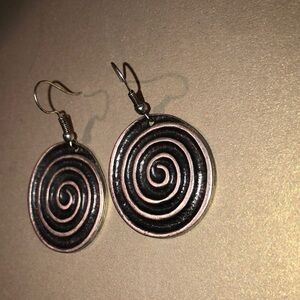 Elegant silver spiral dangle earrings perfect for any occasion. Add a touch of sophistication to your outfit.