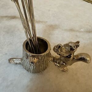 A delightful squirrel design, perfect for adding a touch of whimsy to your dining experience! This charming piece elegantly holds appetizers and canapés, beautifully complemented by our adorable cocktail pick featuring a cute acorn tip. Elevate your dining decor and impress your guests with this enchanting accessory!