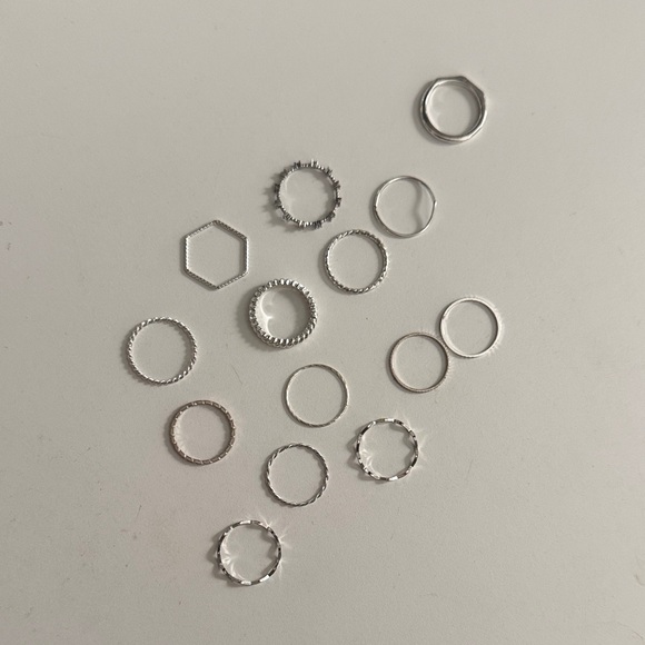 Set of silver stacking rings. Various designs for versatile styling. Bunch of different brands, some are a bit tarnished, but all are in good condition. Make offers!