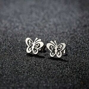Silver Stainless Steel BUTTERFLY Stud Earrings