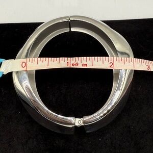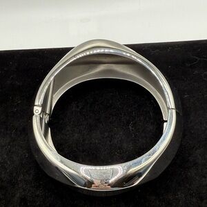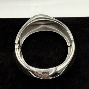 Elegant silver stainless steel bangle bracelet. Modern design with a sleek finish.