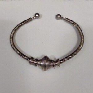 Silver Stainless Steel Beaded Open Cuff Bracelet 6 1/4" Adjustable Metal Silv