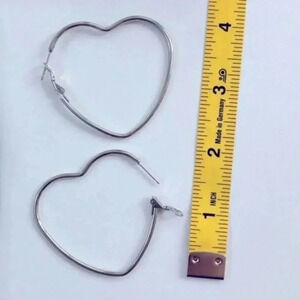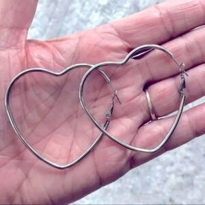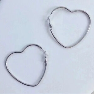 Silver Stainless Steel Large Heart Shaped Hoop Earrings NWT