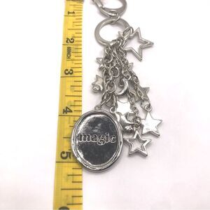 Add a touch of magic to your accessories with this elegant silver star charm keychain. Perfect for adding a stylish flair to your keys or bag.