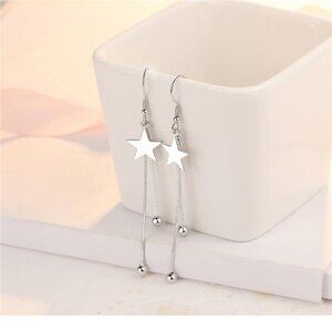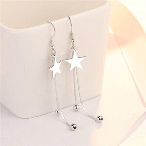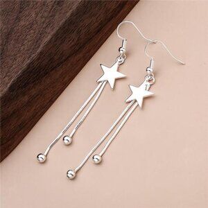 Silver Star Tassel Earrings 925 Sterling Luxury Bead for Women Fashion