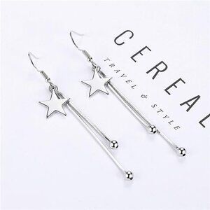- **Design**: Features a star motif at the top with dangling silver chains ending in spherical accents for a celestial-inspired look.
