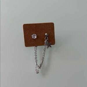Elegant silver earring with a star charm and chain design. Perfect for adding a touch of sparkle.