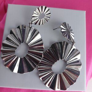 Silver Starburst Chunky Dangle Disk Brilliant Shiny