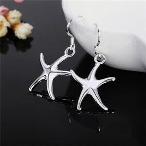 Silver Starfish Earrings 925 Sterling Charm Cute for Women Luxury Fashion Party