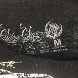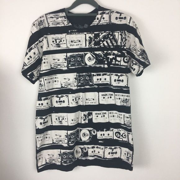Silver star size medium, color black & white round collar. Short sleeves. 100% cotton. Armpit to armpit 19—Length 24.