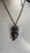 Charming owl pendant necklace in a silver and black finish. The color is hard to describe as it looks like it’s a silvery pewter color with other color metals. Large black cabochons make up the eyes with clear rhinestones surrounding the eye area. The owl measures 2.25”L x 1”W. The chain measures 33.5”. Previously worn in good condition.