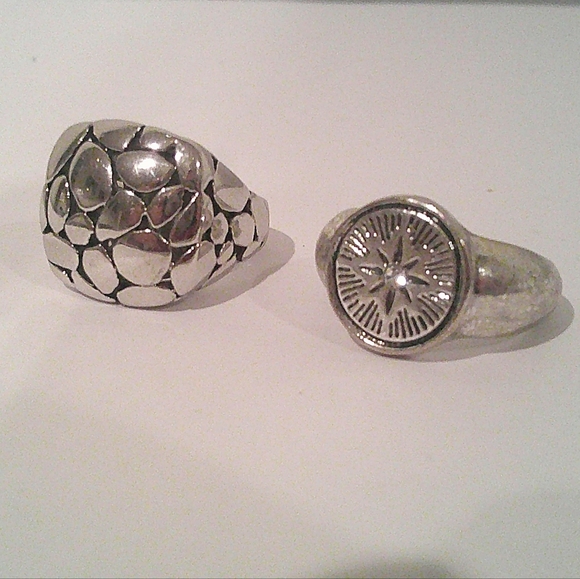 Set of two silver statement rings. Unique designs for a bold look.