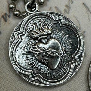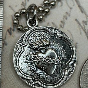 Silver Steel Flaming Sacred Heart Religious Medal Charm Pendant Long Steel Cha…