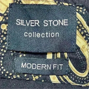 Up for sale is a stylish Silver Stone Collection button-up shirt for men. The shirt features long sleeves, a collared neckline, and a modern fit, making it perfect for any occasion, whether it's a casual day out, a party, or even traveling. The shirt is made of a comfortable blend of polyester and cotton, and is machine washable for easy care.