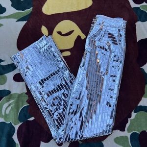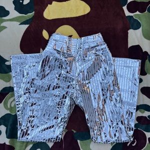 Shine in these stylish silver straight leg pants, perfect for any occasion. Elevate your wardrobe with this chic and versatile piece.