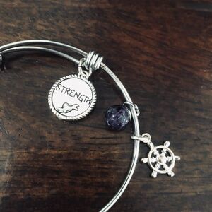 Silver “Strength” anchor boat helm wheel charm bangle bracelet in excellent like new condition.