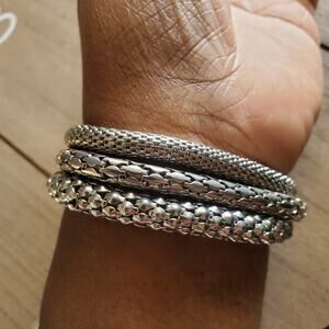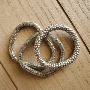 Silver stretch metal bracelet set. This silver bracelet set is pre-loved, in great condition, and comes from a pet and smoke-free environment.