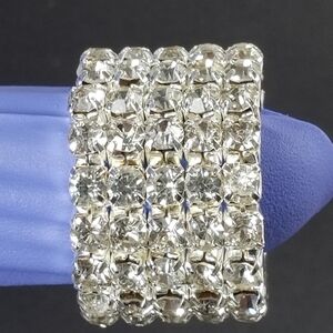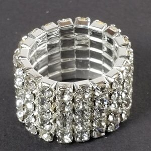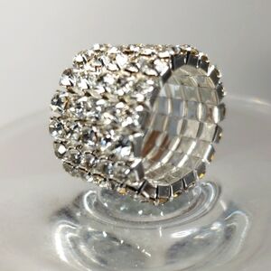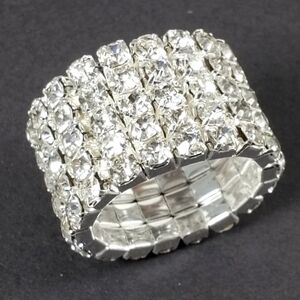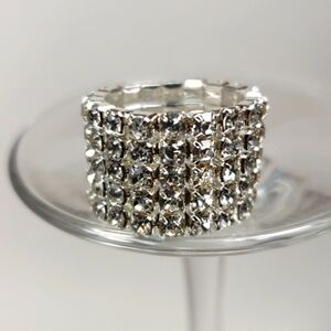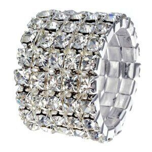 Silver Stretch Ring with Clear Rhinestones – Glamorous Wide Band Bling - 5 Rows