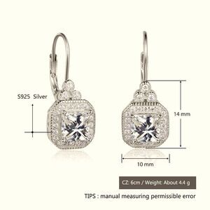 Sterling Silver 925 crystal studded earring. Pave around center square stone and cluster stones.