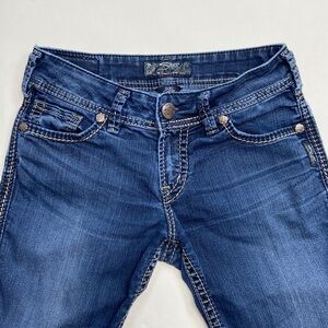 Excellent Condition Silver Jeans Co Suki Capri Sequin Embroidered S Back Pocket Ankle Cropped Capri Designer Jeans