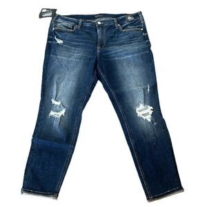 Silver Suki Curvy Fit Skinny Jeans Distressed Denim Stone Wash Blue Women SZ 18
