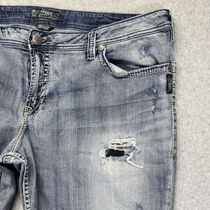 Silver Suki Flap Bermuda Shorts Women’s 24 Distressed Stone Wash Denim