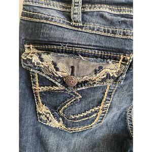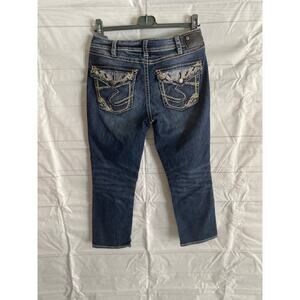 Silver Suki High Capri Fluid Denim Jeans W/Embroidered Back Pockets 30Wx23L EUC
