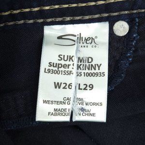 Silver Suki Mid Super Skinny Jeans Women Size 26 Dark Wash Stretch Denim MidRise