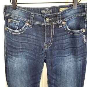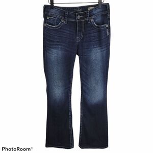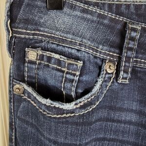 Excellent like new condition in a size 28. Silver western glove works Suki Surplus bootcut jeans. Flap back pockets with thick stitching.