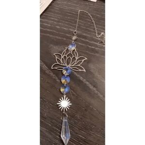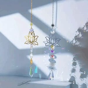 Beautiful Silver Sun & Lotus Flower Crystal Hanging Sun Catcher