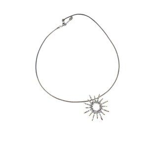 Silver Sunburst Necklace 925 FAS With Rhinestones Pendant Dainty Chain Adjustabl