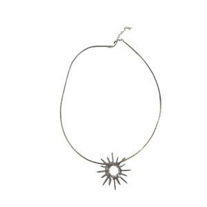 This exquisite silver sunburst necklace features a dazzling rhinestone-encrusted pendant that radiates elegance and charm. The dainty chain is delicate yet durable, ensuring comfort and longevity. An adjustable clasp allows for a perfect fit, making this piece a versatile addition to any jewelry collection. A radiant accessory that exudes timeless beauty.