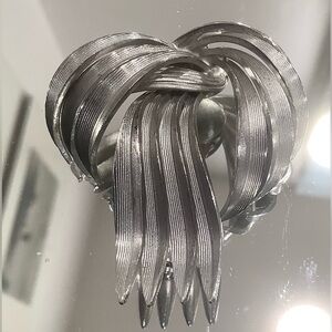 Unusual brooch with silver metal wing/swirl design. Unmarked.