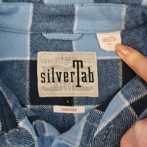 Silver Tab Shirt Mens Large Light Blue Plaid Oversized Casual Long Sleeve