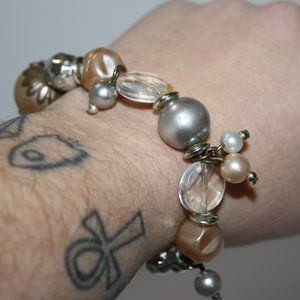 🤎 Silver & Tan Chunky Pearl Bracelet · 7" · Elastic Fit · Bold Neutrals 🤍