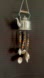 Charming silver tone teapot wind chime adorned with vibrant rainbow beads. Perfect for adding a touch of whimsy to any space!