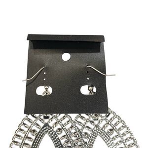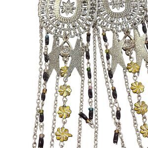 Silver Teardrop Filigree Yellow Black Beads Long Earrings Chain Fringe Stars NWT