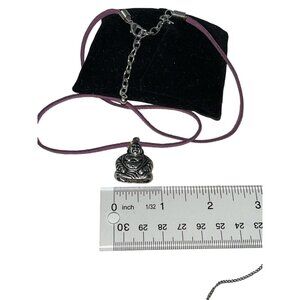 Silver Textured Fat Buddha Charm Amulet Pendant Purple Leather Zen Necklace